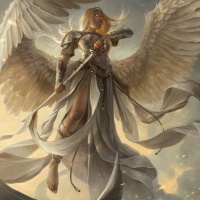 an angelic figure. The character has wings, which are a common attribute for angels in