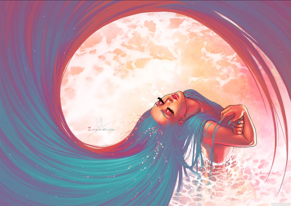 warm colors transitioning from pink to orange and then to yellow near the top of the image. The artwork conveys a peaceful, reflective atmosphere through its combination of