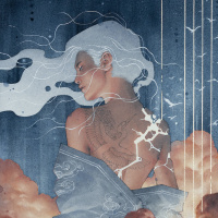 a state of relaxation or perhaps even sleep. They have an ethereal or ghostly quality to them, possibly due to the color palette that suggests a dreamy or otherworldly atmosphere. The artwork style is somewhat impressionistic with visible brushstrokes, contributing to