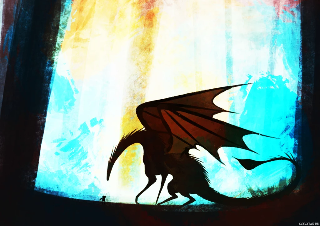 The image shows a fantasy-style illustration of a dragon, which is characterized by its silhouette and the artistic style. The dragon appears to be standing in front of