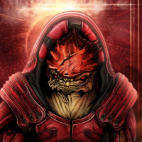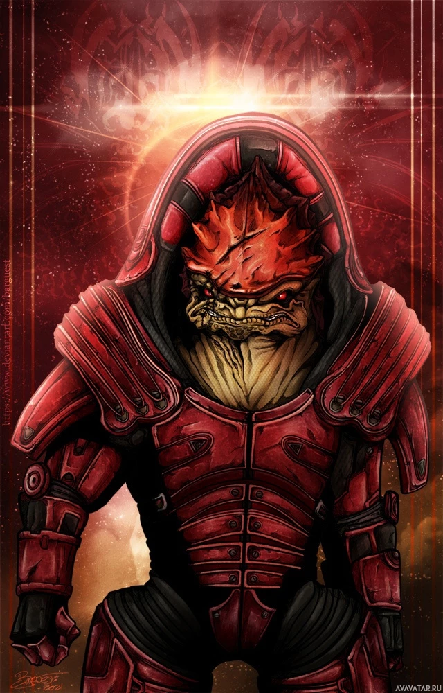 the video game "Mass Effect." This character is known as the Krogan, which is a species of alien in the game's universe. The Krogan is depicted with