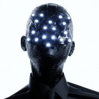 The image shows a humanoid figure with a head that appears to have various electronic components and lights integrated into it, suggesting advanced technology or cybernetic enhancements. This kind of image is often associated with science fiction themes involving robots or artificial intelligence.
