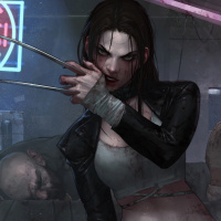 an illustrated character who appears to be X-23, also known as Laura Kinney or Wolverine's daughter. She is depicted in