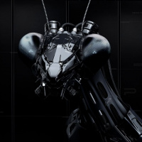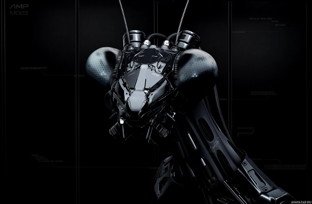 The image shows a robot designed to look like a large insect, specifically resembling