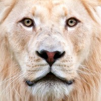 expression of the lion appears calm yet regal, with its gaze directed towards the camera. This is an animal photograph that clearly identifies the subject as a lion.
