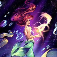 a magical object that resembles a seashell or a trident, which is often associated with her character in the film. The background suggests