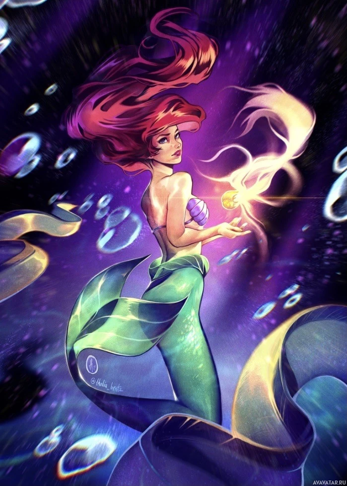the animated movie "The Little Mermaid." She is depicted with her distinctive long