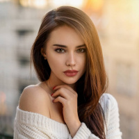 defined eyebrows and lips, which give her a polished look. The background appears to be