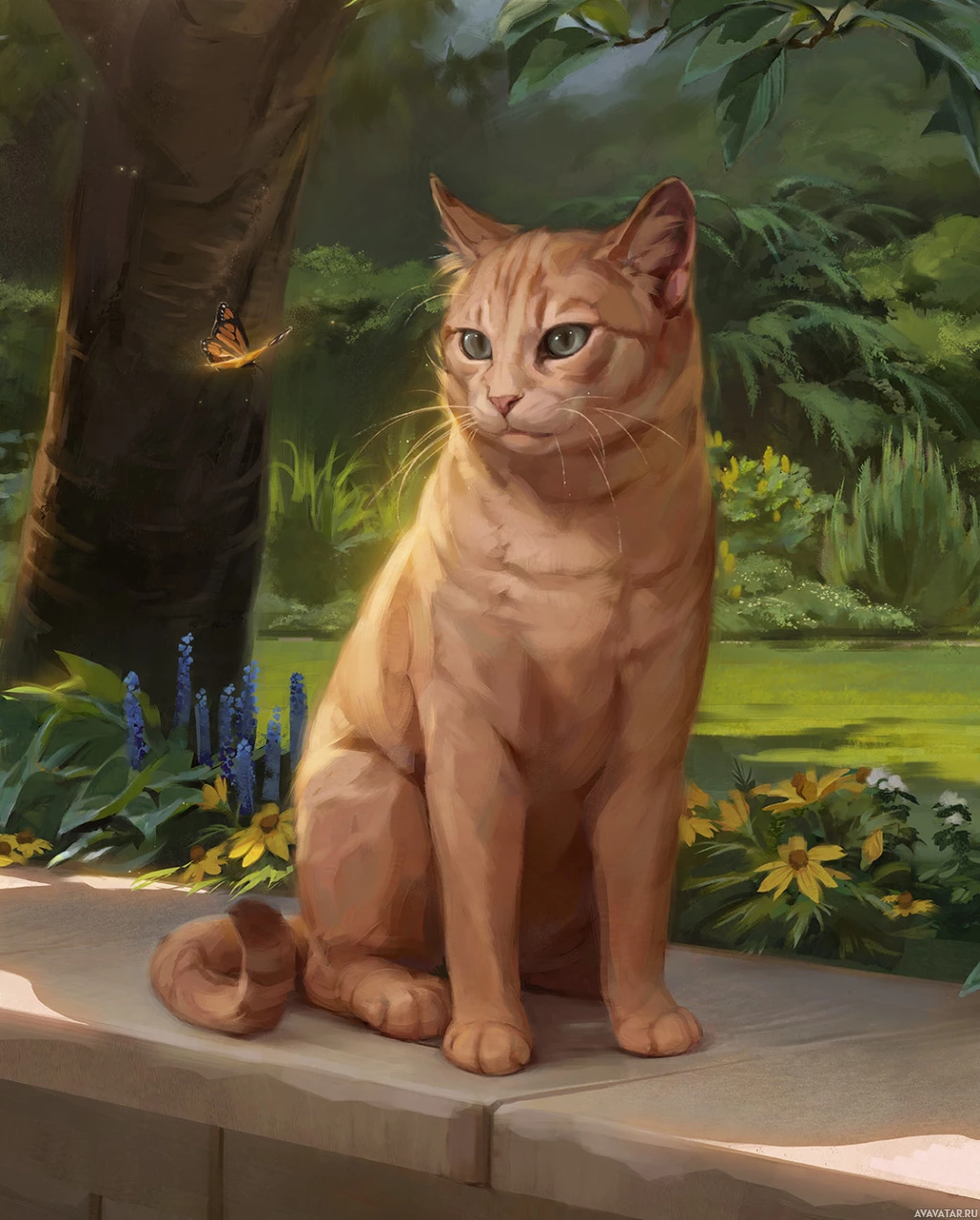 The image shows a cat sitting on what appears to be the ledge of