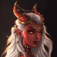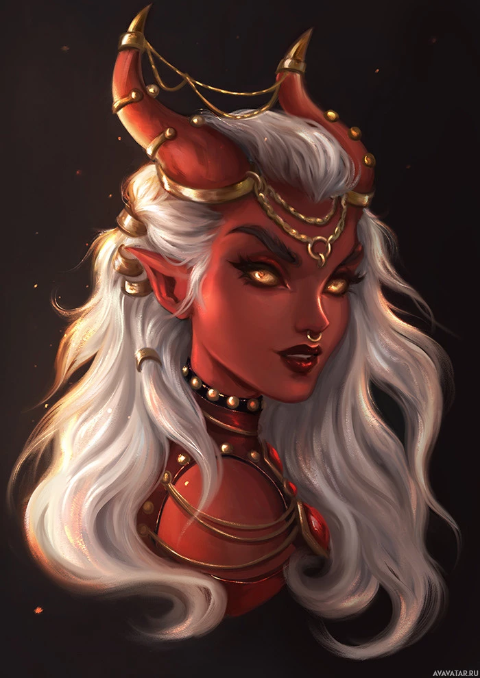 white hair, which is often associated with demons or mythical creatures in various fictional realms. The character's expression and design elements, such as the horns on their head, further emphasize this fantasy theme. The artwork showcases intricate details that give