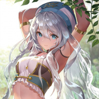 white hair and what appears to be a fantasy or magical theme. She is wearing a costume that seems inspired by historical or fantasy elements, possibly indicating
