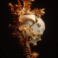 an intricate design, featuring what appears to be gold and other metallic elements. It has an ornate appearance, suggesting it could be a decorative piece or artistic creation rather than an actual