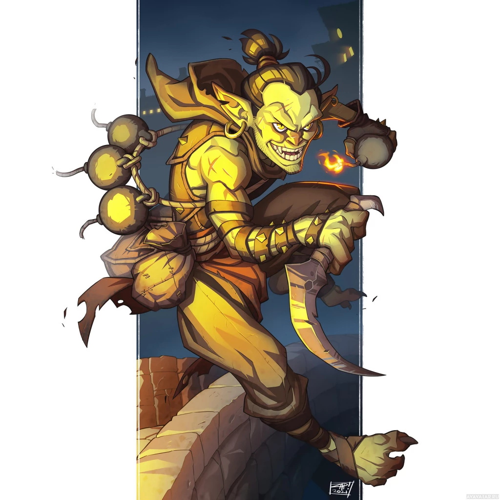 a fantasy character that appears to be a goblin. This creature is depicted with elongated ears,