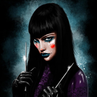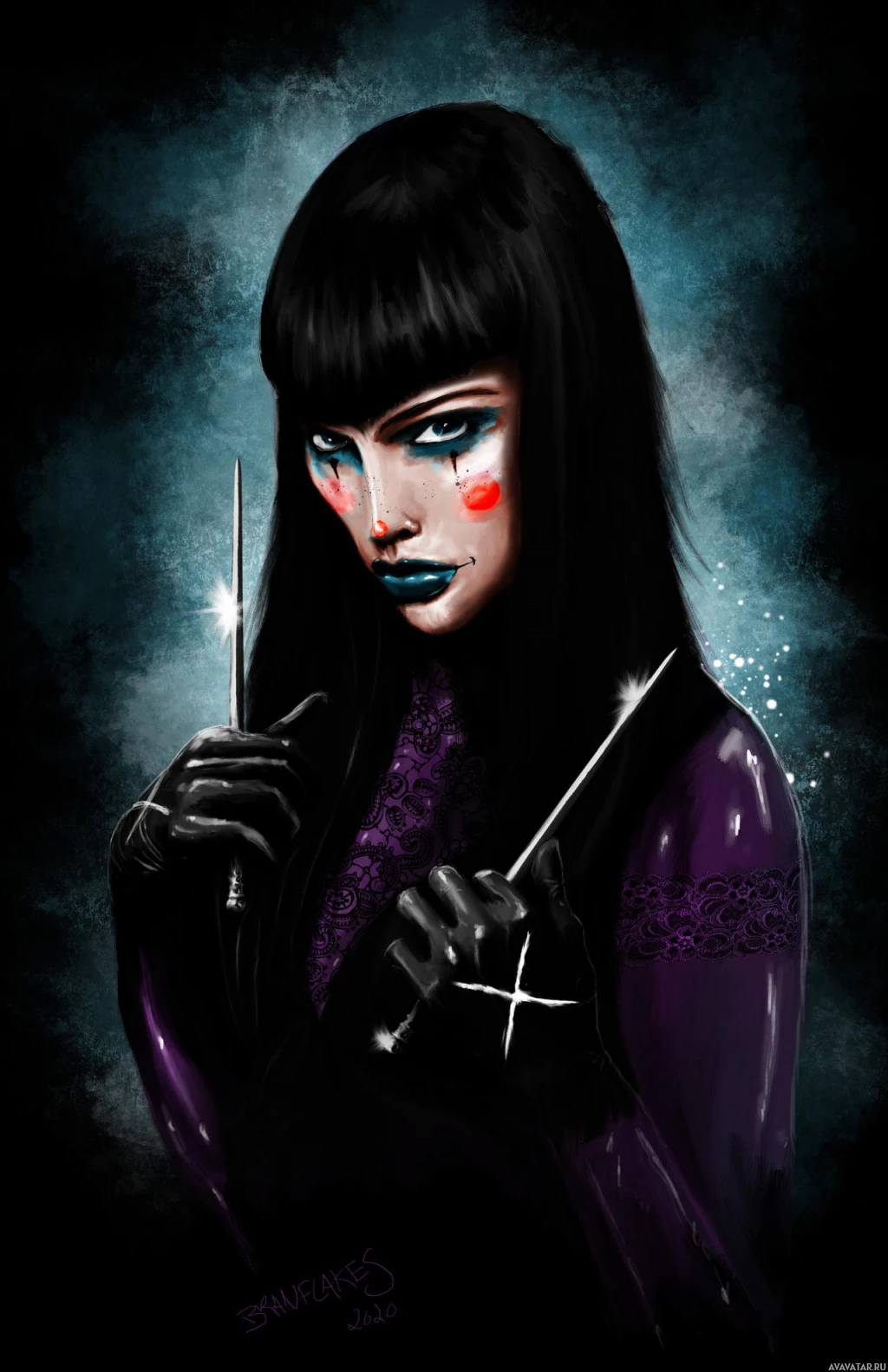 black gloves, and possibly jewelry or accessories that give off a gothic or emo vibe. The artwork has