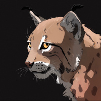 The picture shows a lynx, which is an animal known for its distinctive ear tufts and spotted fur. It appears to be looking intently towards something in the distance.