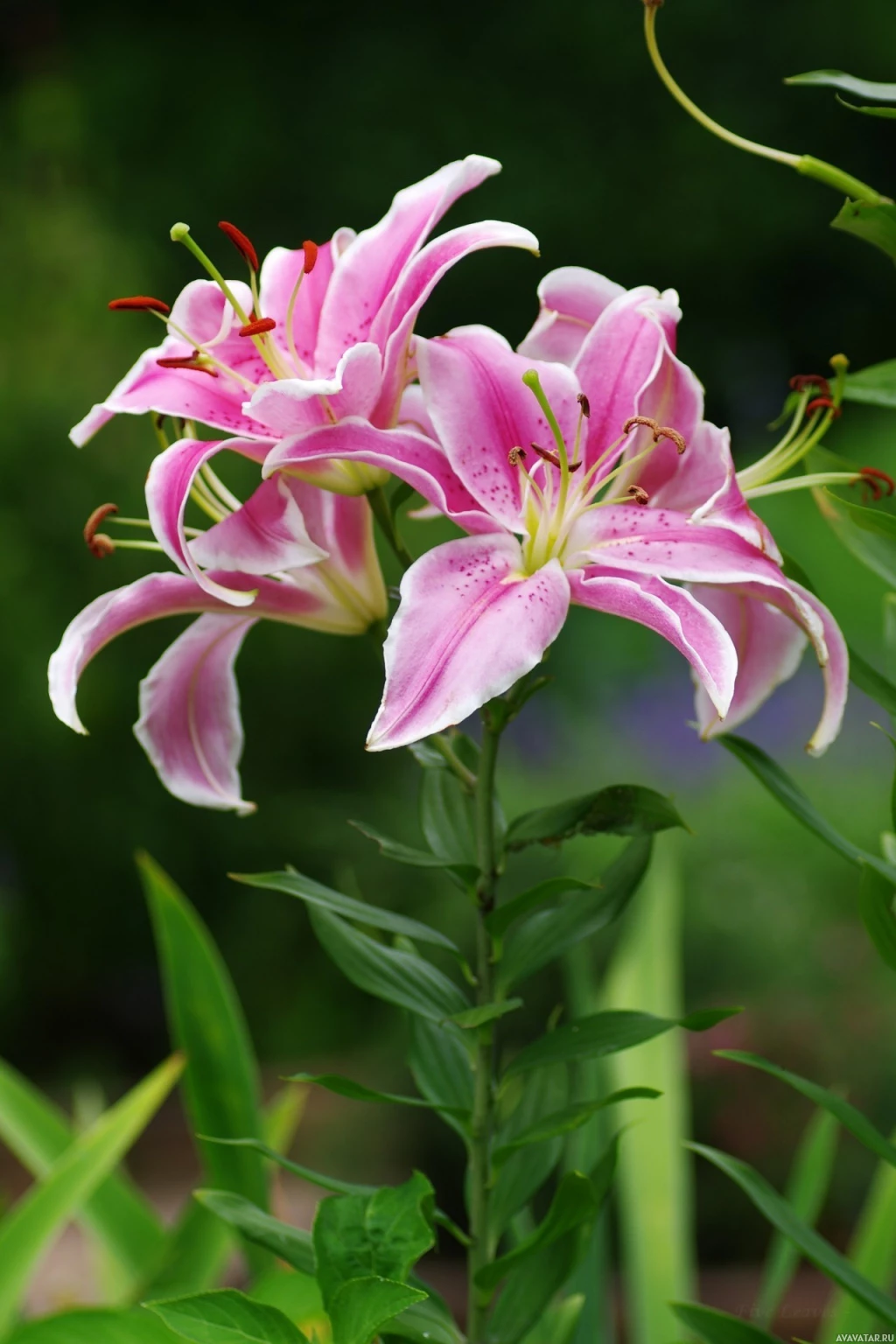 The image shows a beautiful pink lily flower in