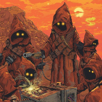 This is an illustration of a group of individuals dressed in robes that resemble those of the Ewoks, which are fictional creatures from