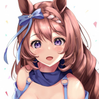 a young girl with brown hair, wearing a blue and white outfit that resembles a maid's uniform. She has a surprised or excited expression on her face and is holding what appears to be