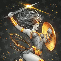 muscular build and dynamic posing, capturing the essence of her superhero persona.