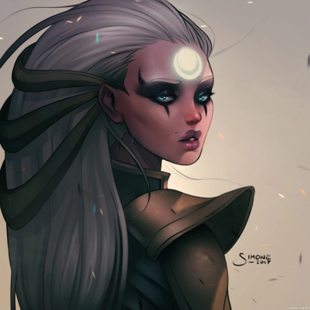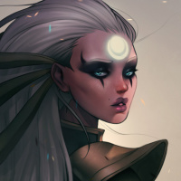 silver hair and is wearing what appears to be armor or clothing with some form of insignia on the shoulder. Her expression is neutral, and she seems to be looking to the side rather than directly at the viewer. The background has a texture that might suggest fire or flames, which could imply