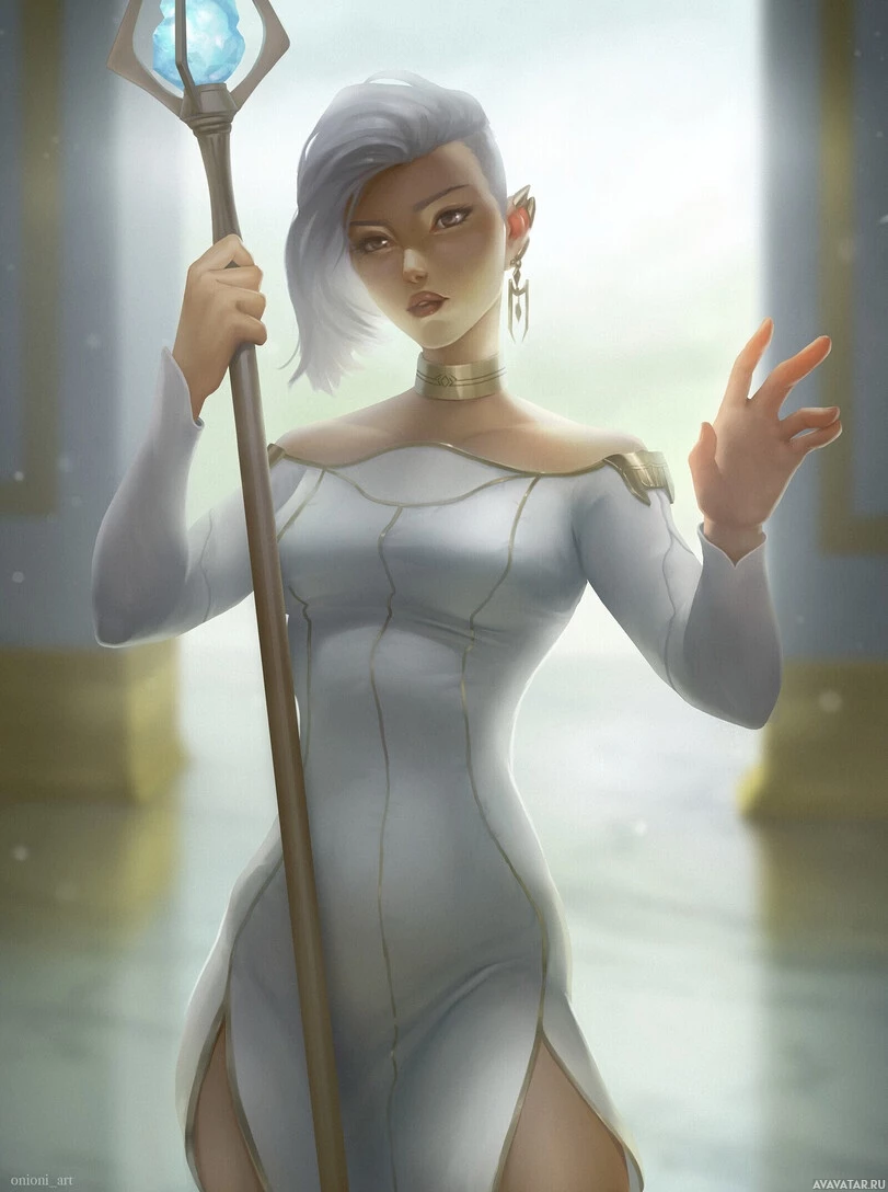 an action pose, suggesting she might be preparing for battle or casting a spell. The setting looks like it could be from a high fantasy or