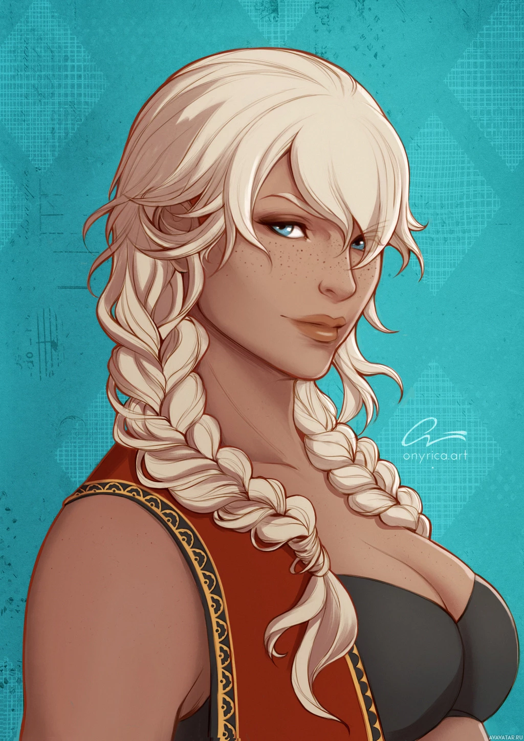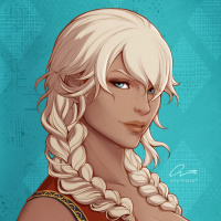 a female character with white hair styled in braids. She is wearing