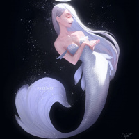 The image depicts a character that resembles a mermaid. She has