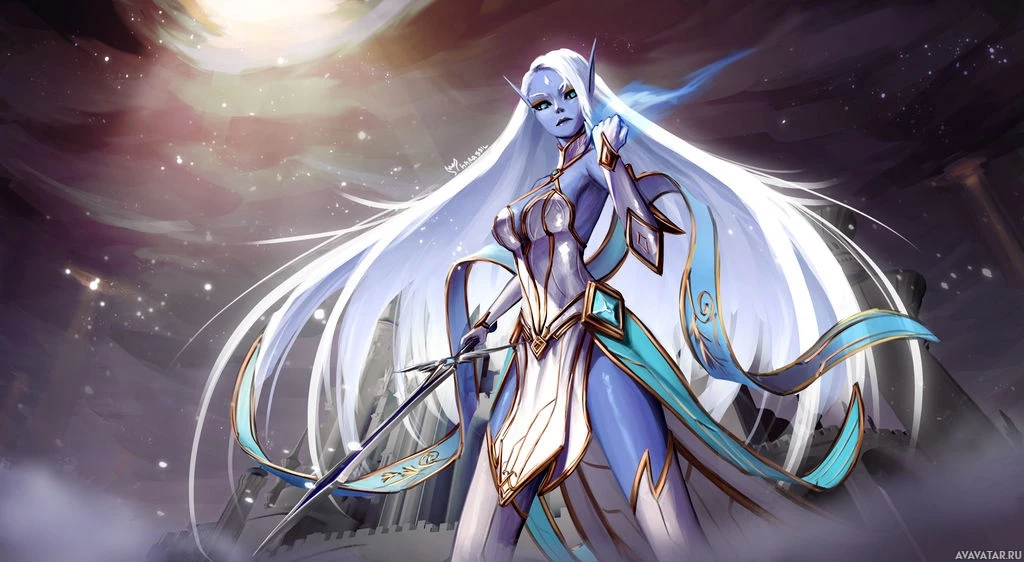 На картинке изображен фэнтезийный персонаж с белыми волосами, держащий меч и одетый в доспехи, напоминающие традиционную одежду дроу. Персонаж, похоже, из видеоигры "Path of Exile" или похожего фэнтезийного сеттинга.