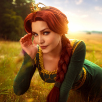 The image features a person dressed as Princess Fiona, the main