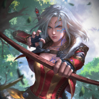 a forest setting, which fits well with the character's profile as an archer.