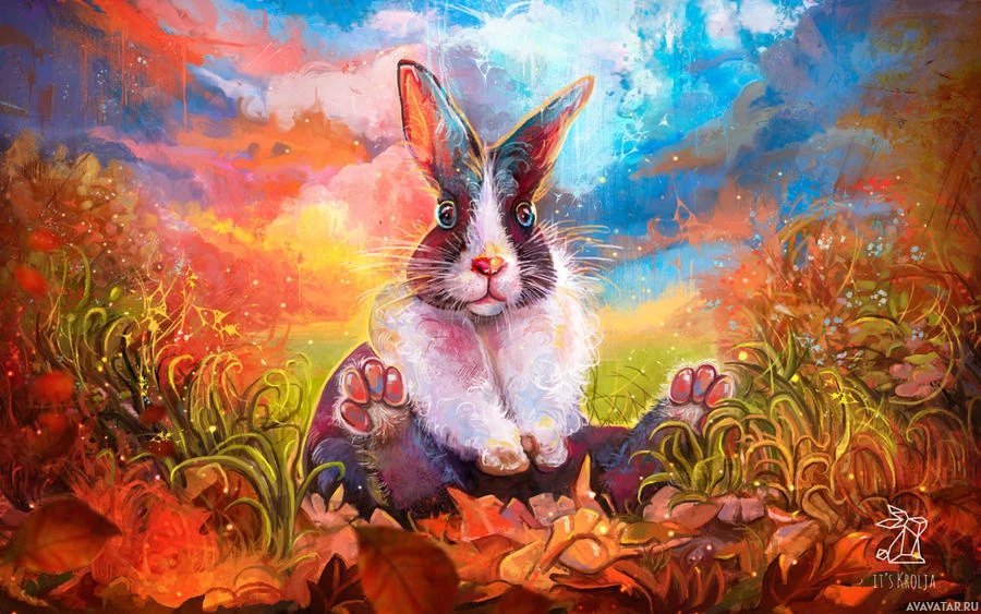 an autumn setting. The rabbit is depicted with