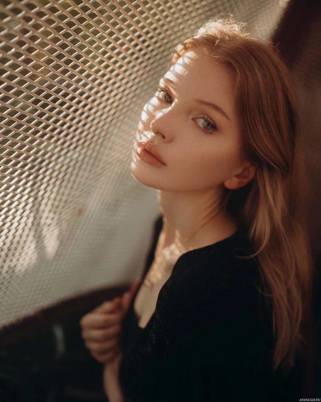 a contemplative mood, looking off to the side. She is positioned near a sunlit area, which casts her shadow on the surface in front of her, creating