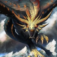 molten rock in the lower part of the image, indicating that the dragon might be associated with fire and destruction. The overall atmosphere is one of danger and