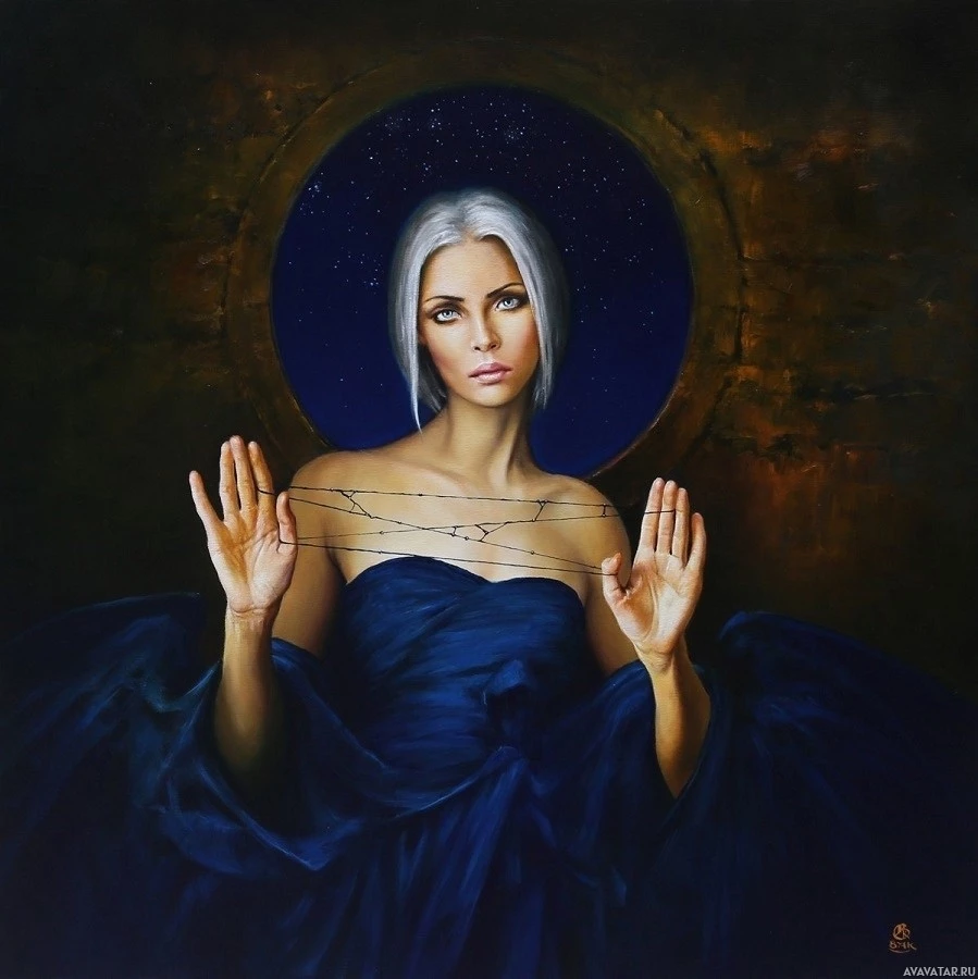 white hair depicted in an artistic style. She has