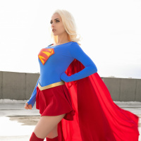 blonde hair styled similarly to Supergirl's portrayal in various media. Additionally, they are wearing