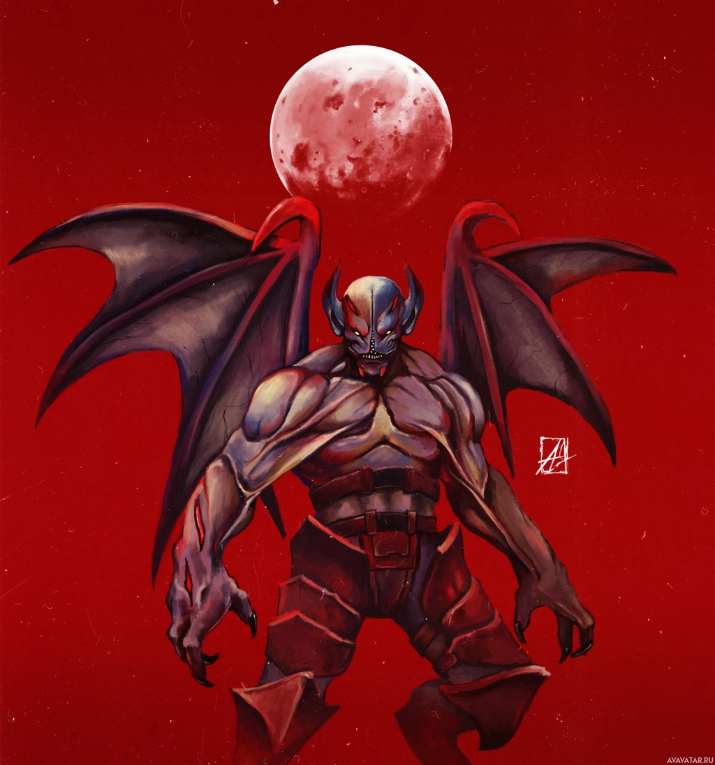 Night Stalker from Dota 2, which is a multiplayer online battle arena (MOBA) game. The artwork features a muscular figure with bat-like wings and