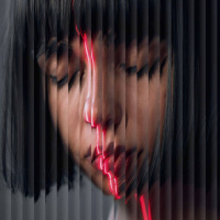 a red light emanating from the side of the person's face, which seems to be a digital or artistic addition rather than an actual physical phenomenon. The person has