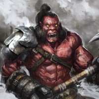 an angry expression. He's wearing armor and carrying