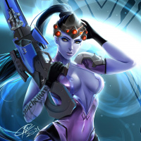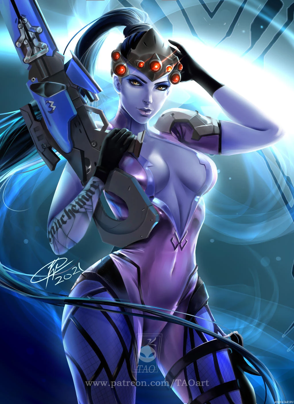 the video game "Overwatch." This character is known as Widowmaker and she is holding what appears to be