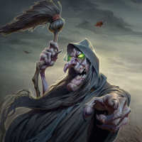 an evil witch, as indicated by the hood and the horror theme. The character is depicted with