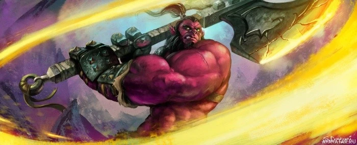 the video game Dota 2, specifically representing Axe, also known as the Cursed Blade. The character is depicted in his