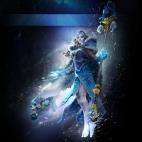 a powerful stance and an appearance that reflects her abilities within the game. Crystal Maiden is known for her ice-based abilities and her ability to transform into