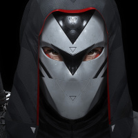 The image features a character wearing a mask. It appears to be a stylized mask, possibly with some futuristic design elements or symbols on it. The person is also wearing what looks like