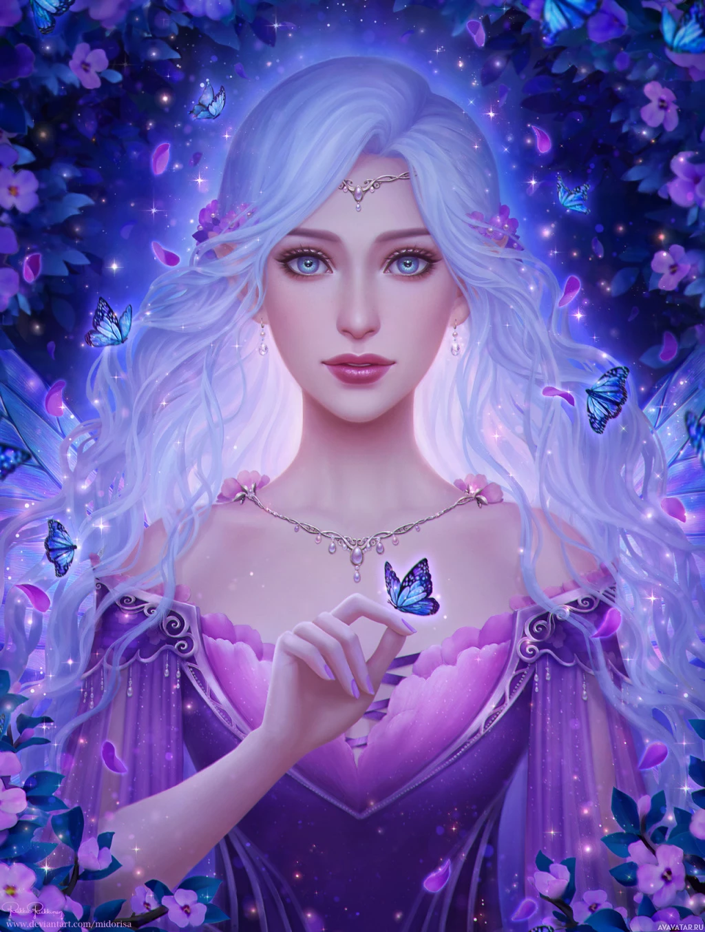 purple tones and butterflies that add to the ethereal ambiance. There are also
