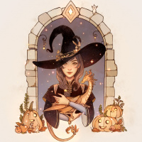 autumnal leaves around the scene, enhancing the seasonal atmosphere. This image combines elements of fantasy and