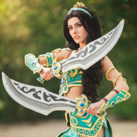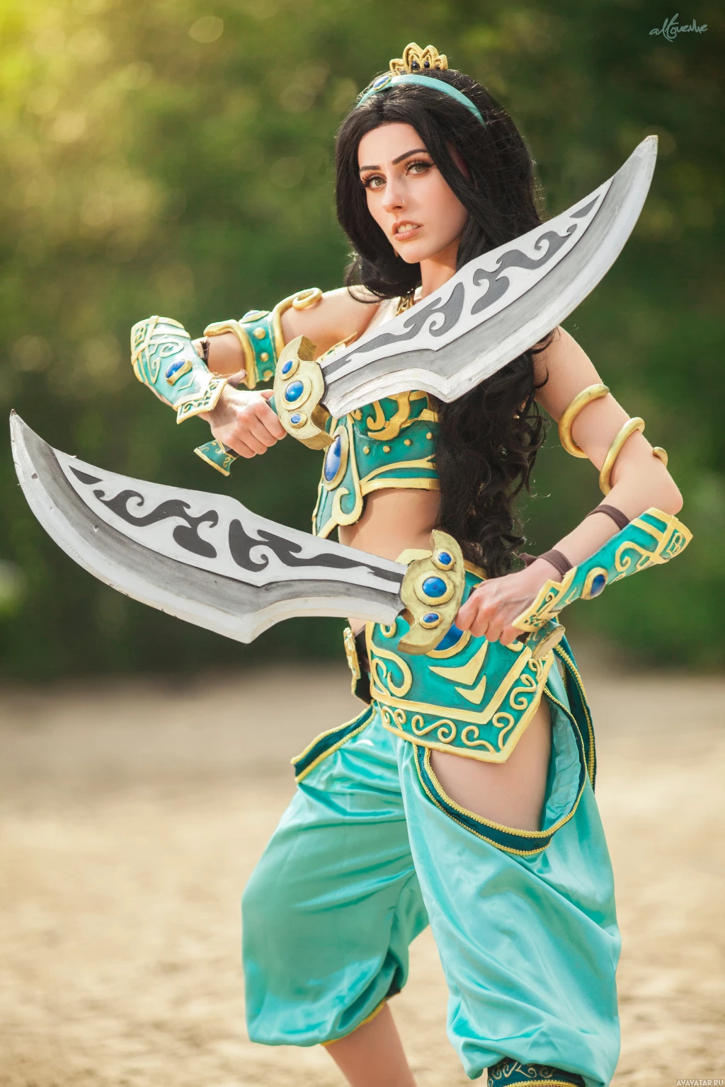 The image shows a person dressed in cosplay, portraying the character Jasmine from