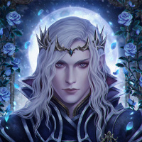 otherworldly setting, adorned with regal or magical accessories such as a crown and possibly a cape or cloak. The background suggests