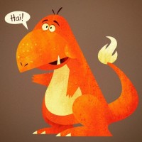 The image shows a cartoon character that resembles Charmander, a Pokémon from the popular franchise. Charmander is depicted in a friendly manner, waving and greeting with "Hi!"