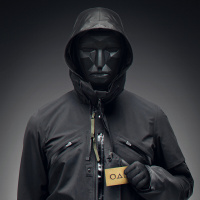 hooded jacket, with a mask that completely covers their face. There is also an item labeled "OA" held by the figure. The style of the image suggests it could be related to fashion, possibly showcasing a brand or clothing line, and the inclusion of the text "serial" might indicate this is part of a series or collection. The overall impression is one of mystery and anonymity due to