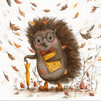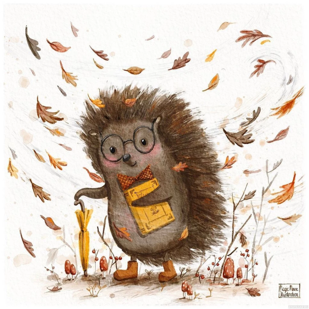 a small book, which it seems to be reading or examining. It has a bow tie on its body and is surrounded by